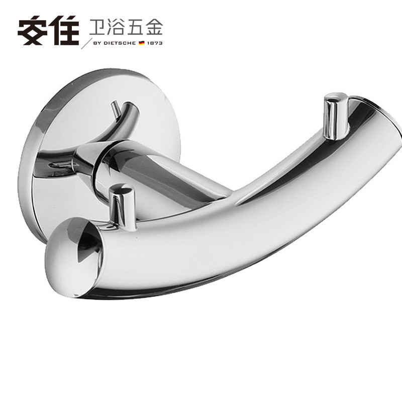 德国安住 免钉无痕挂衣钩挂钩双钩 浴室壁挂排钩衣钩挂衣杆全铜 ERD7477C