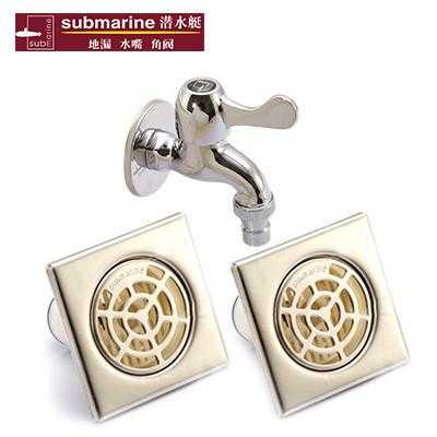 【潜水艇】GF50-10拉丝地漏(2个)+洗衣机水龙头L101X (1个)全铜加厚 新